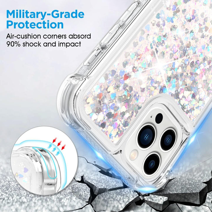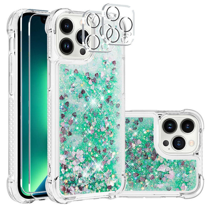 - Sparkling heart-shaped confetti and dynamic liquid quicksand clear sand-glass case for your iPhone . The colorized liquid in the case can move freely, just like the sweat-heart item floating in the water, add much fun to you.