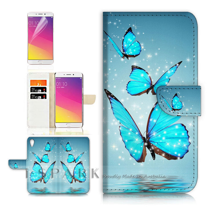 Blue Butterfly Phone Wallet Case Cover For Samsung Galaxy S21 Ultra 5G - 31086