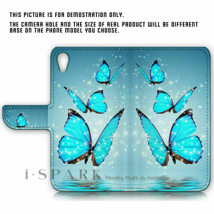 Blue Butterfly TPU Phone Wallet Case Cover For Telstra Smart 4 - 31086