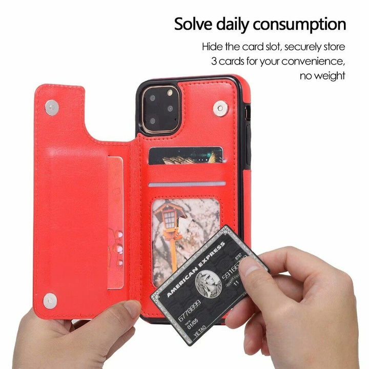 For Apple iPhone 15 - Luxury Card Holder Back Leather Wallet Case Cover