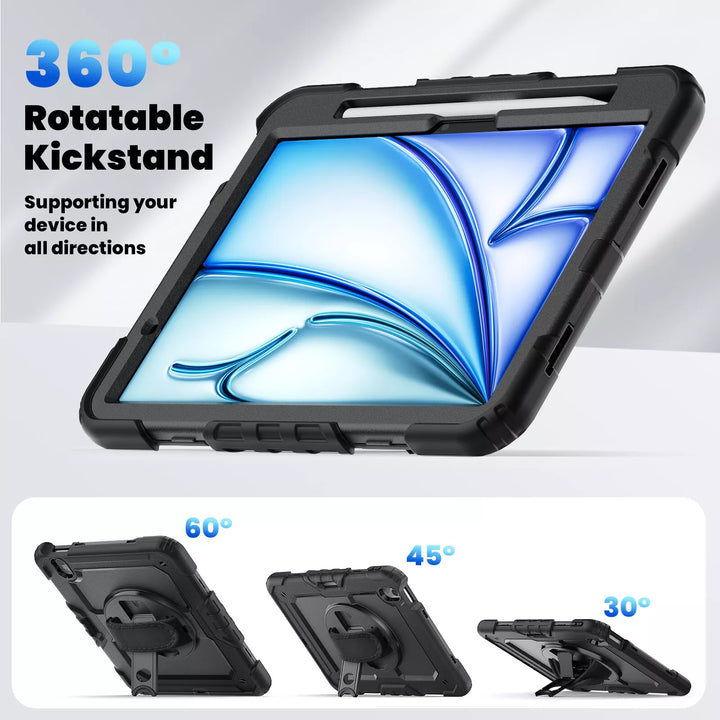 - ✹【MUL-TIFUNCTION HAND STRAP$KICKSTADN】-The 360 °rotating kickstand and adjustable hand strap of the Apple iPad Air 13 -inch M2 case provide convenient user experience for viewing, working, and typing from multiple angles,the stand is stable enough on several different surfaces.