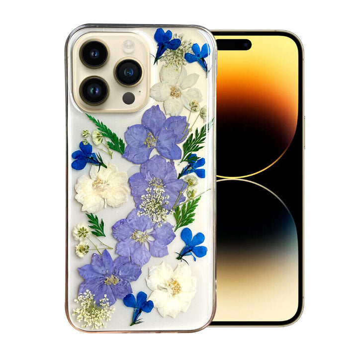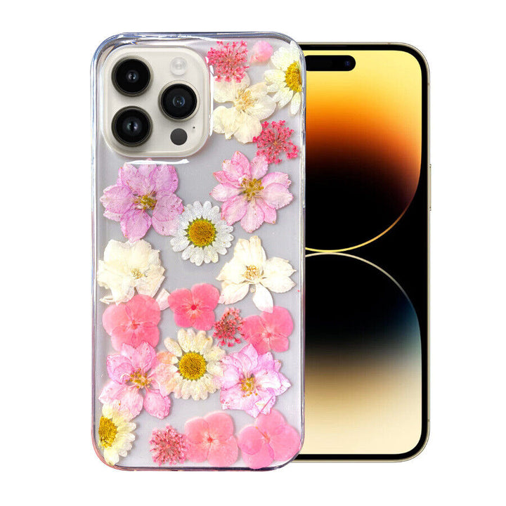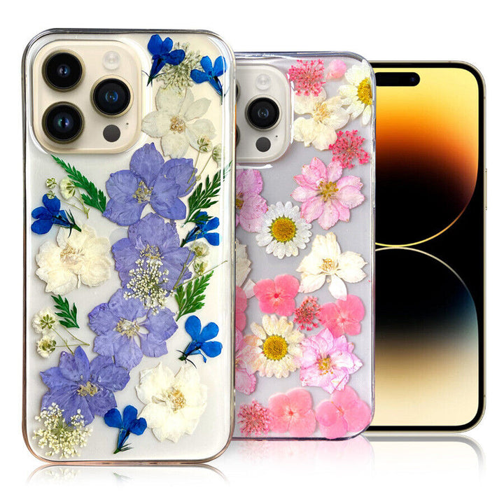 For Apple iPhone 14 Pro Max Plus Real Petals Flower TPU Protective Case Cover