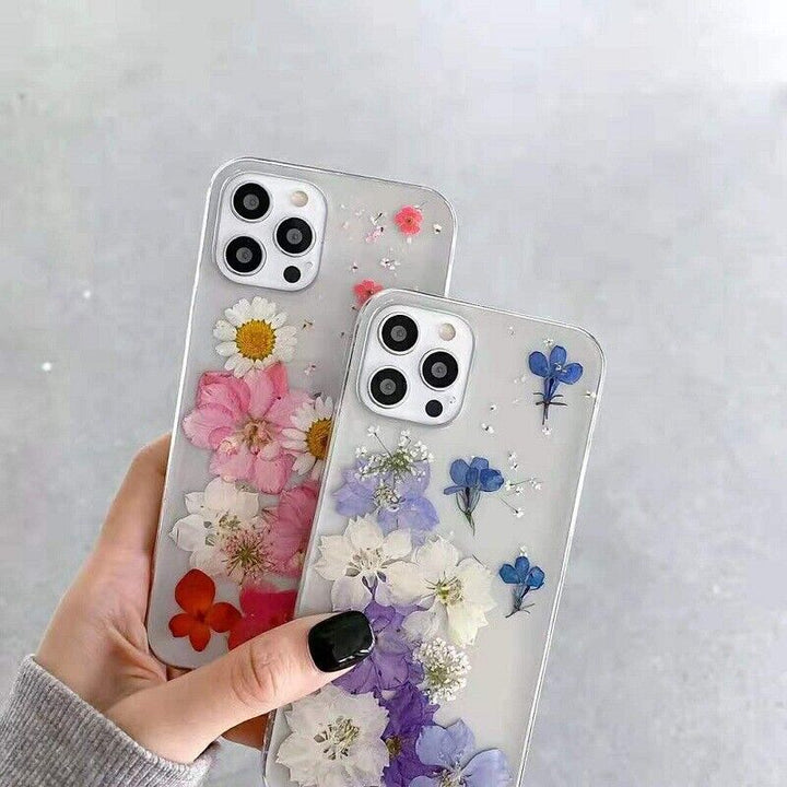 - Dried genuine flowers with elements, no two cases are alike, each one is unique