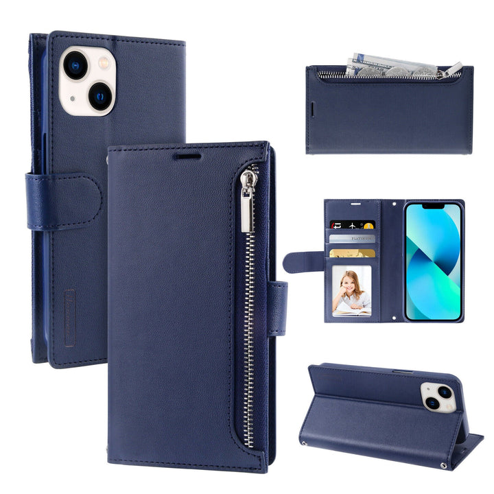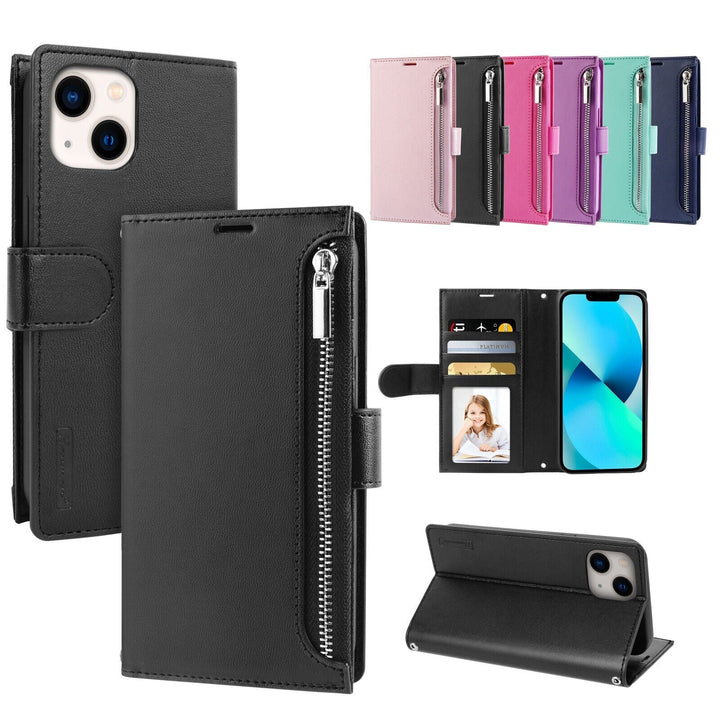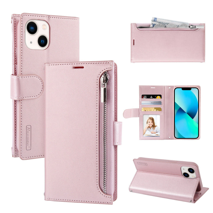 For Apple iPhone 15 Hanman Zipper Wallet Flip Card Holder Phone Case