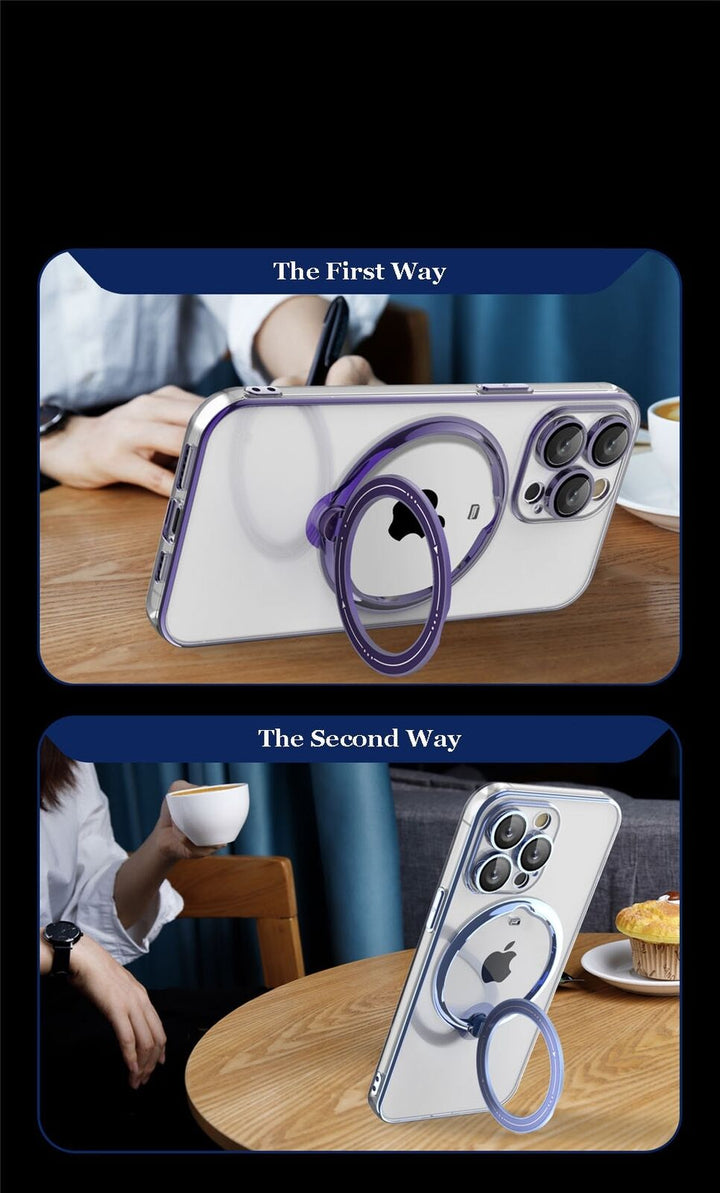 For Apple iPhone 15 Kickstand Ring Cover Magnet Magsafe Plating TPU Case