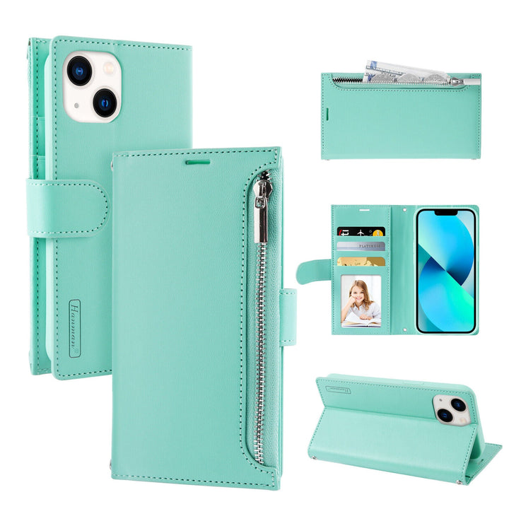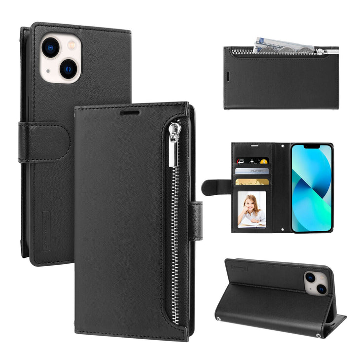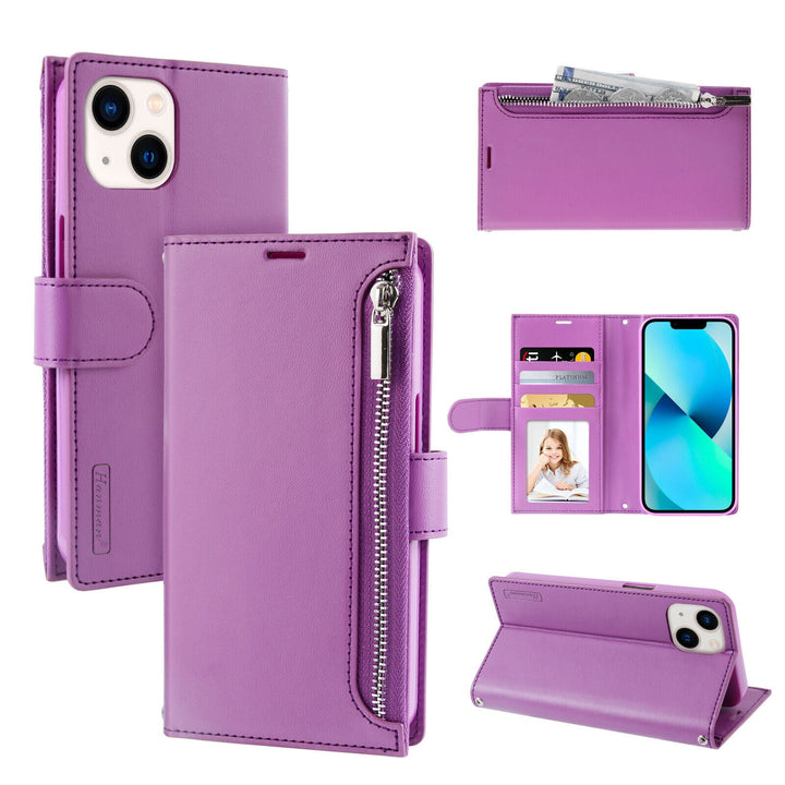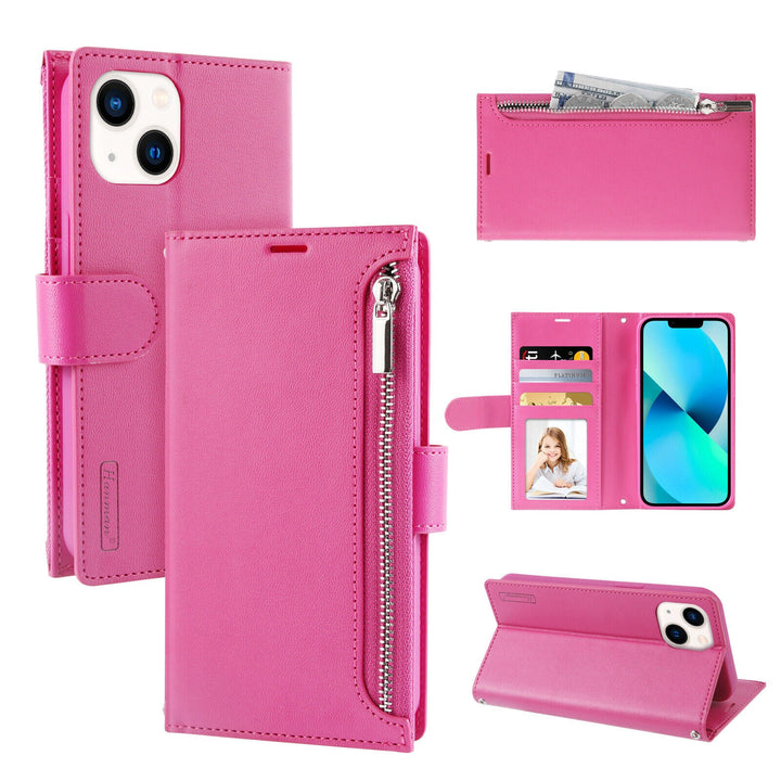 For Apple iPhone 15 Pro Hanman Zipper Wallet Flip Card Holder Phone Case