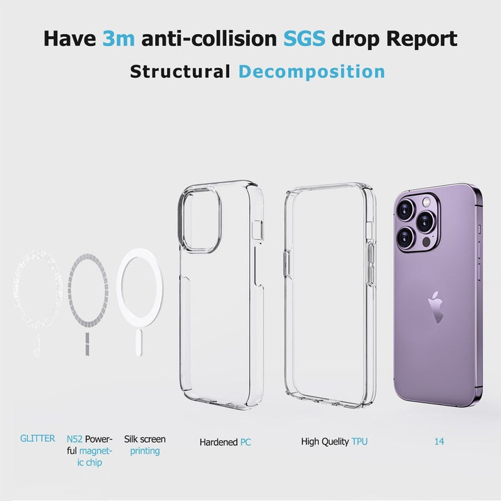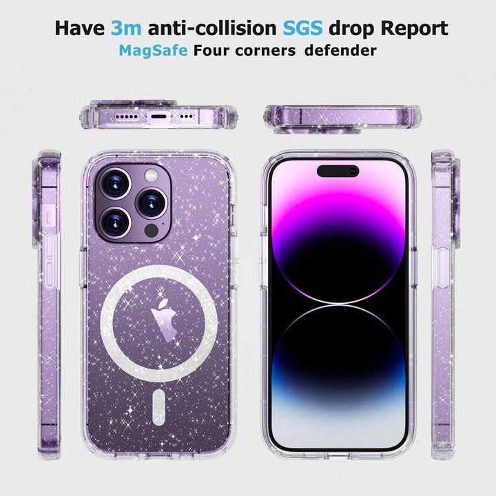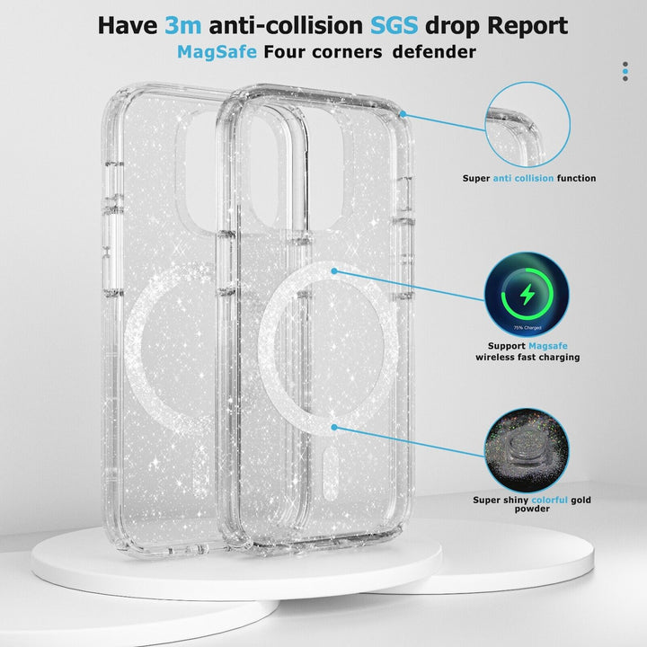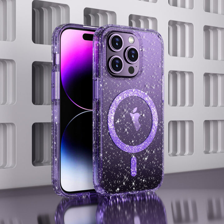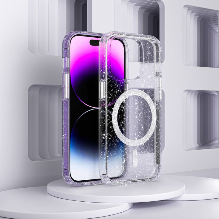 For Apple iPhone 15 Strong Magnet Magsafe Glitter Bling Hard Case Cover