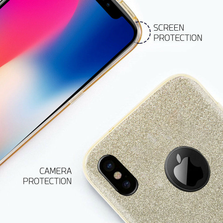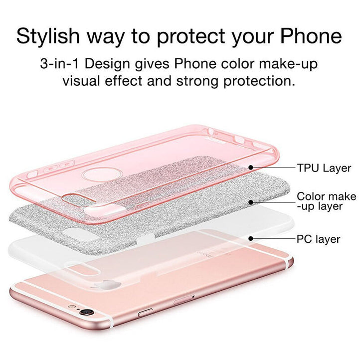 [3 Layers Hybrid structure] TPU Soft Shell (Outer) + Flash of Silver Film (Middle) + Transparent PC Frosted Shell (Inner), not only protect the sparkles, but also protect your iPhone from dropping, shocking and scratching perfectly.