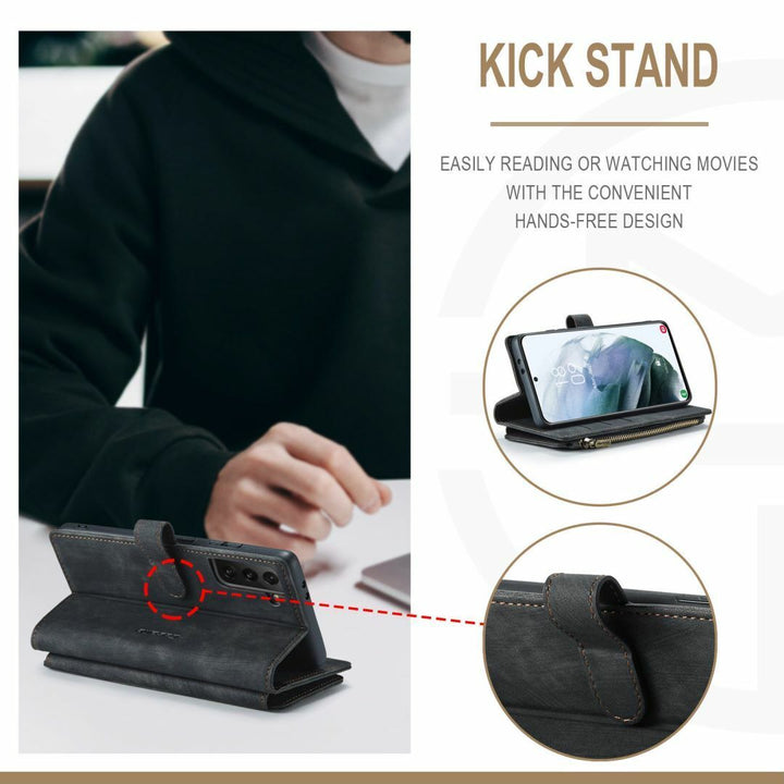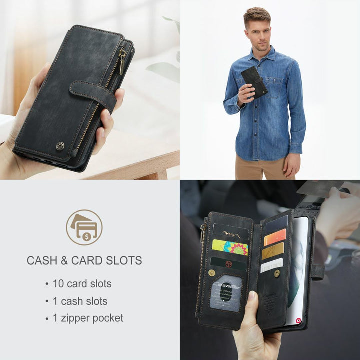 For Galaxy S22 Ultra / A53 Caseme Durable Magnetic Flip Zipper Holder Phone Case