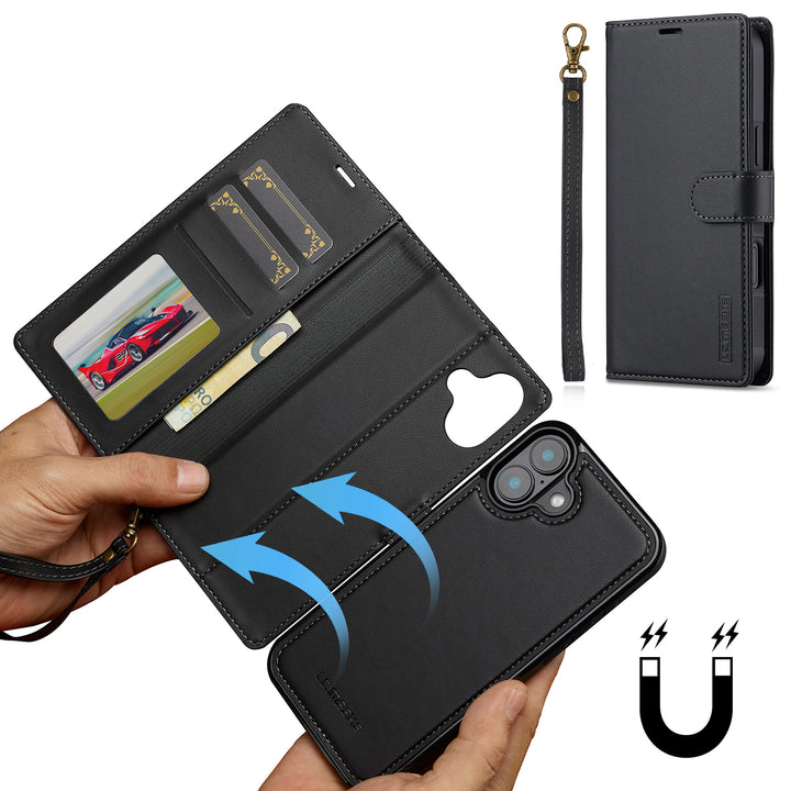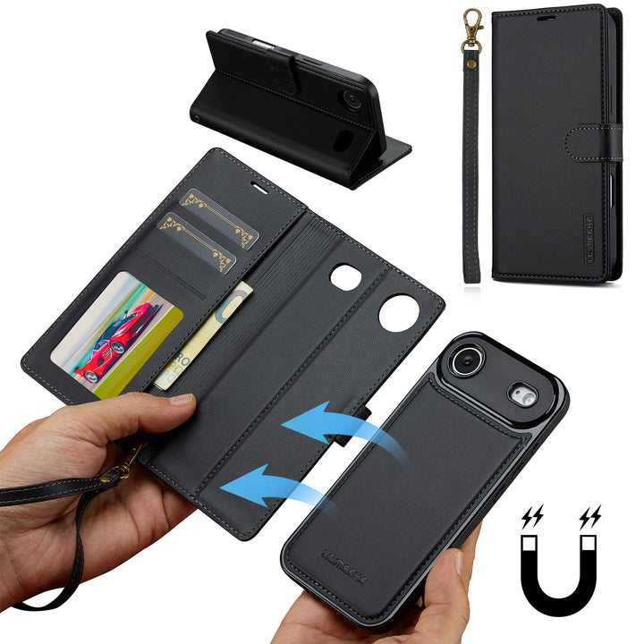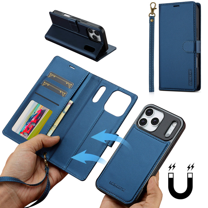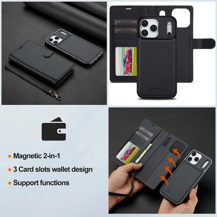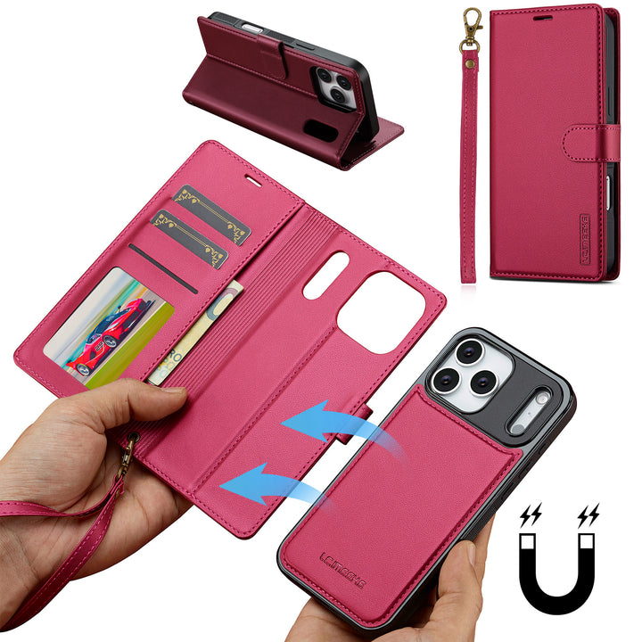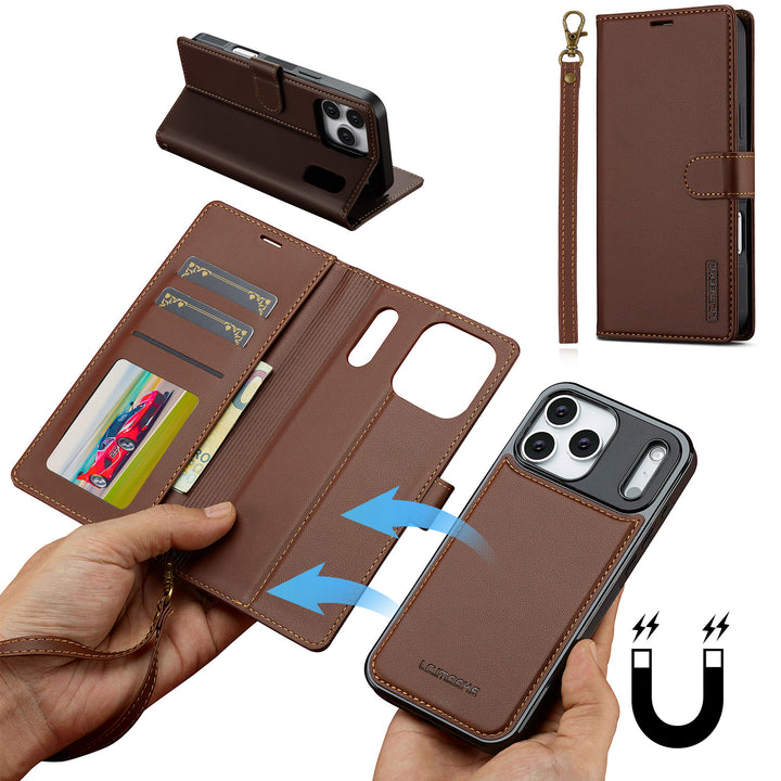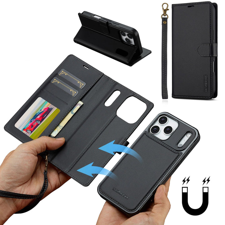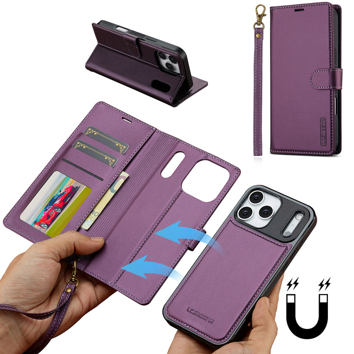 For Apple iPhone 17 Pro Max Luxury Detachable Leather Wallet Flip Case + Strap