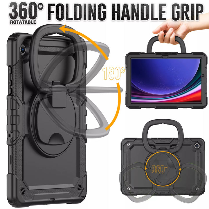 - ✹【MUL-TIFUNCTION HAND STRAP$KICKSTADN】-The 360 °rotating kickstand and adjustable hand strap of the samsung galaxy tab a9 case provide convenient user experience for viewing, working, and typing from multiple angles,the stand is stable enough on several different surfaces.