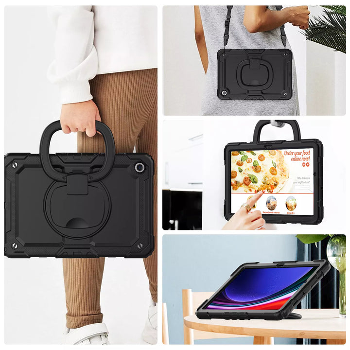 - ✹【3 LAYER FULL BODY PROTECTION】-The galaxy tab A9 cases with built-in ring kickstand, extremely convenient and easy to push out and back in. The ergonomically designed stand that pulls out to give the perfect viewing angle for watching media, web browsing and reading. Raised screen and bezel Edges for extra protection when fall.