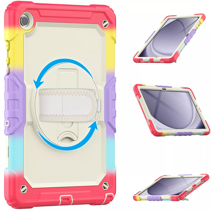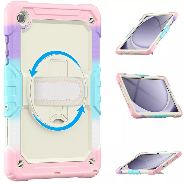 - ✹【MUL-TIFUNCTION HAND STRAP$KICKSTADN】-The 360 °rotating kickstand and adjustable hand strap of the samsung galaxy tab a9 Series case provide convenient user experience for viewing, working, and typing from multiple angles,the stand is stable enough on several different surfaces.