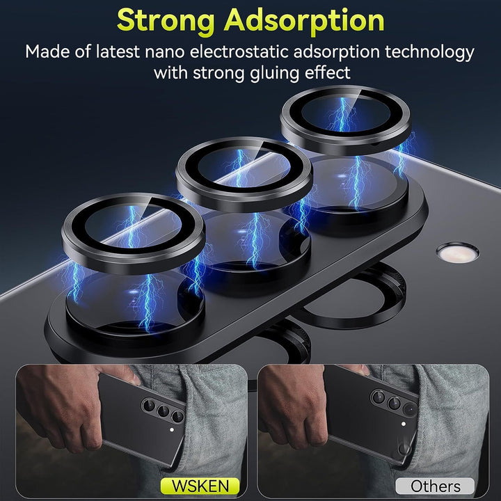- Full Coverage & Drop-Proof & Scratch-Proof: The aviation aluminum metal ring and 9H tempered glass camera protector effectively protecting the lens from scratches to high impact drops.It necessary to protect your galaxy phone camera lens from damage and scratches with the lovely lens ring.