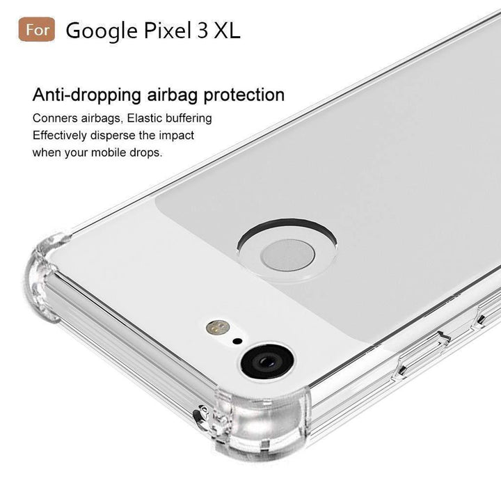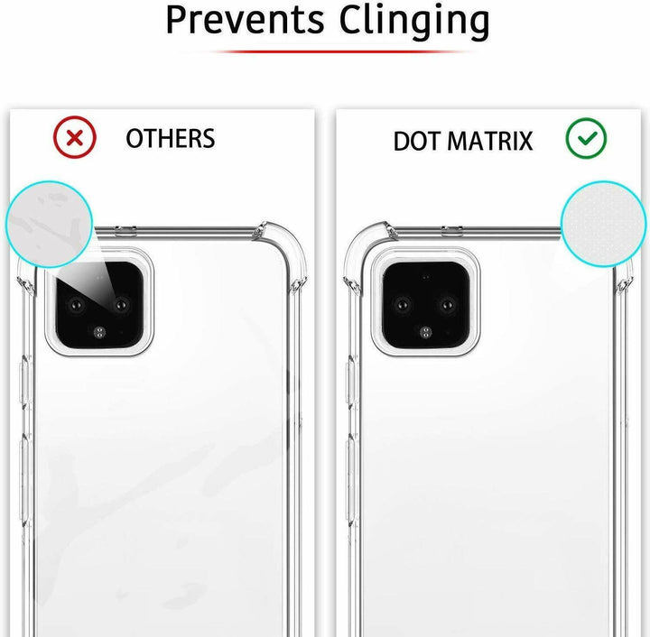 Slim with Shockproof Design.It offers protection and functionality in a slender and unobtrusive phone design.Air Cushion Technology:The wrap-around beveled edges provide a lip that is higher than the screen level to protect your screen from contacting the surfaces and provide a lay-on-table design.Smartly designed hybrid clear hard case with TPU side bumper design gives your phone grip on surfaces.