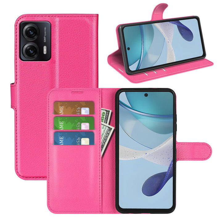 Premium Leather Wallet Case Flip Cover For Moto G04