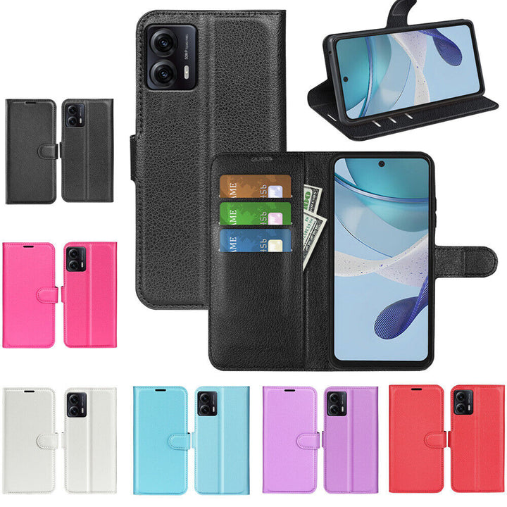 Premium Leather Wallet Case Flip Cover For Moto G34