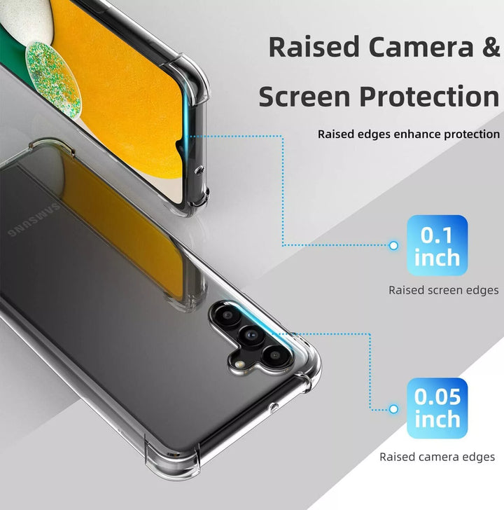 Slim with Shockproof Design.It offers protection and functionality in a slender and unobtrusive phone design.Air Cushion Technology:The wrap-around beveled edges provide a lip that is higher than the screen level to protect your screen from contacting the surfaces and provide a lay-on-table design.Smartly designed hybrid clear hard case with TPU side bumper design gives your phone grip on surfaces.